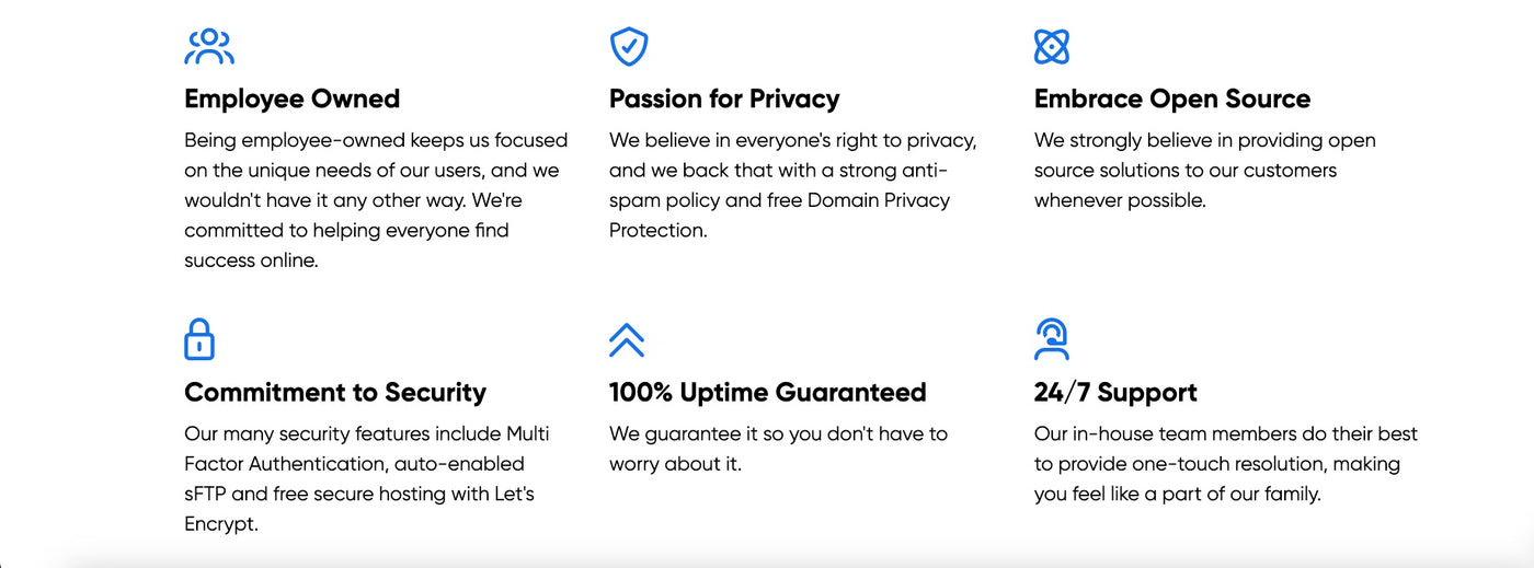 Daily backups, free SSL, DDoS protection, and 100% uptime guarantee keep your sites secure and always online.